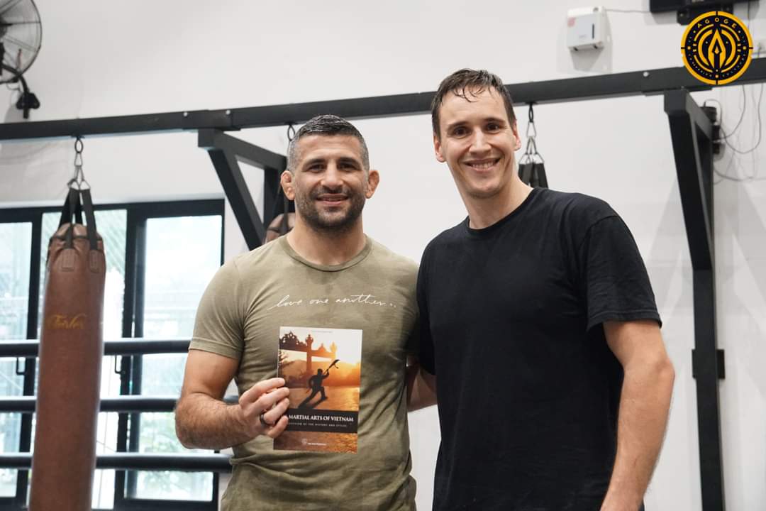 Augustus presenting Beniel Dariush with a copy of “The Martial Arts of Vietnam”